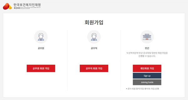 1. 노인인권 사이버교육 수강을 위하여 한국보건복지인력개발원 또는 코히 홈페지에 접속합니다.