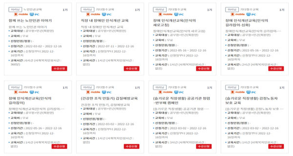 최근 고령화 사회에 접어들면서 노인 관련 정책 및 노인 복지 교육은 한국보건복지인력개발원에서 관련 직종 대상자들을 위해 시행하는 교육과정입니다.